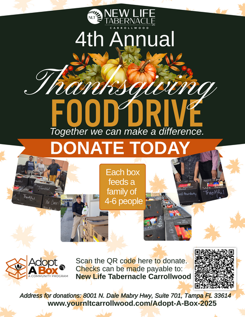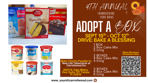 🟢 Donate physical items by dropping them off at New Life Tabernacle Carrollwood
